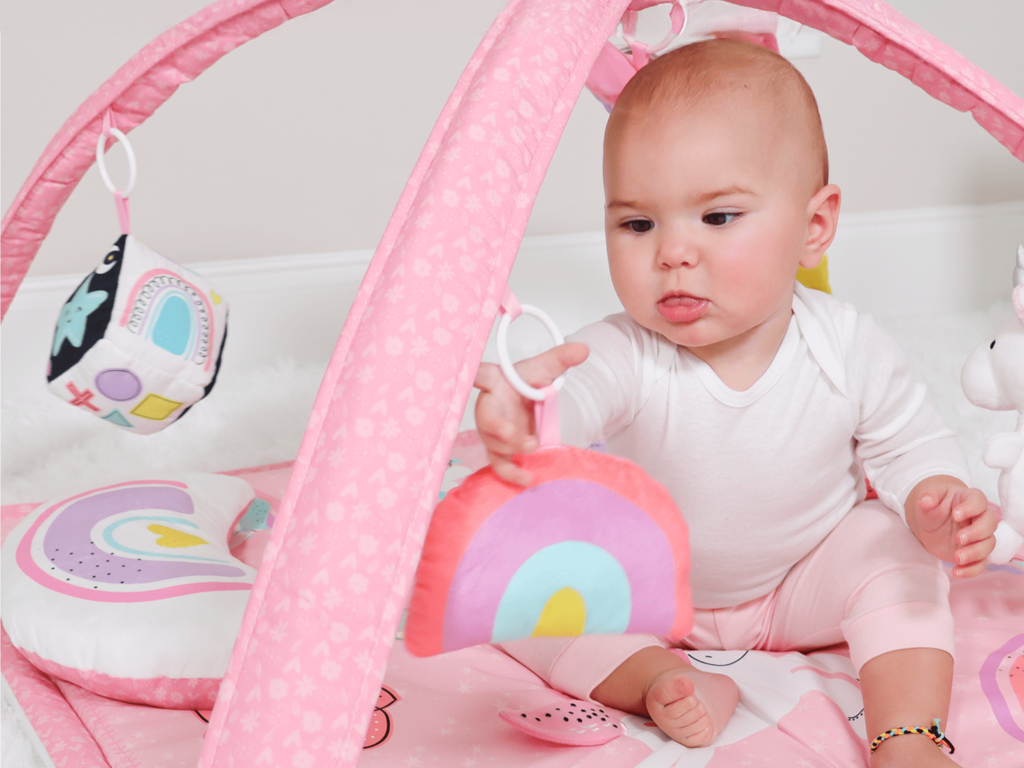 Baby enjoys the mobile very much, kicking and cooing as the music plays.