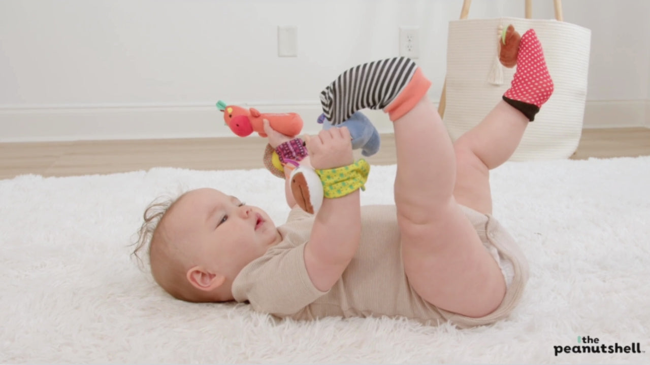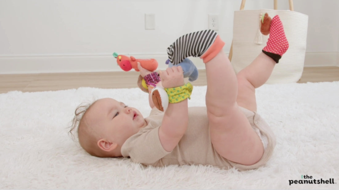 This set of wrist and sock rattles is more than just a toy; it's an essential tool for your baby boy or girl. Each hand and foot rattle encourages reaching and grabbing, helping to develop the critical motor skills necessary for your growing baby. Made from high-quality, breathable fabrics, these rattles ensure comfort and safety during play. Lightweight and compact, they are optimal for on-the-go adventures, allowing you to bring fun along wherever you roam. Plus, cleaning is a breeze—simply toss them in the wash for quick maintenance. With our Montessori Inspired Soft Rattle Set, you're gifting a fun-filled experience that supports your baby’s brain development and sparks their curiosity! These baby feet toys are must haves for 0-6 month and 6-12 month babies and work great as unique baby shower gifts for girls or boys. Whether you need a gender neutral baby gift, a new born developmental toy, doing a baby registry search, browsing for the coolest baby stuff, or looking for infant stocking stuffers, we have you covered!