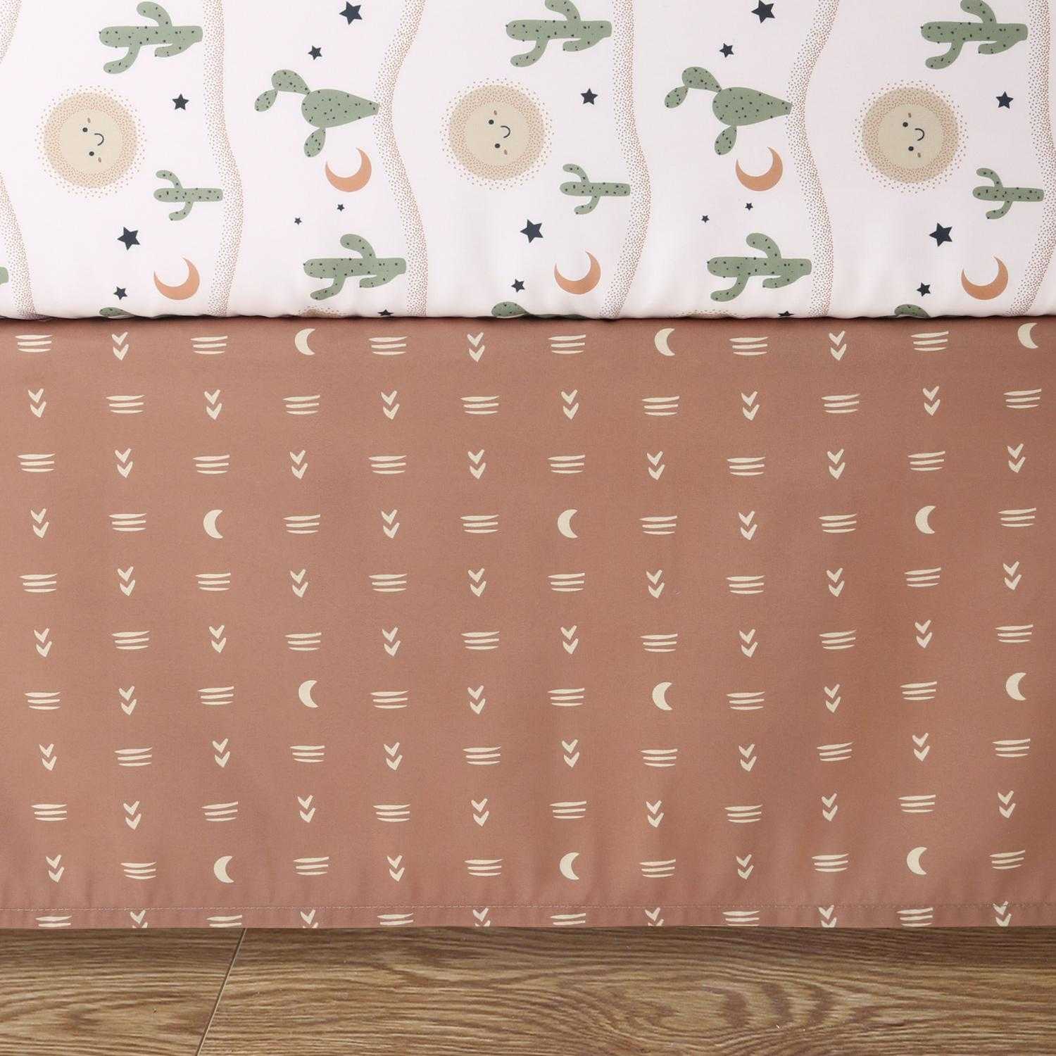 Our Boho Rainbow 3 Piece Microfiber Baby Crib Bedding Set brings a charming and playful bohemian theme to your baby’s nursery, featuring butterflies, celestial motifs, and a rainbow. This 3-piece set includes everything you need for a coordinated nursery look: a beautifully crafted crib quilt, a fitted crib sheet, and a matching bed skirt. The fitted crib sheet is designed to fit standard crib mattresses (28" x 52") securely with all-around elastic, ensuring a snug and comfortable environment for your baby. Made from soft microfiber, our bedding set is gentle on your baby’s delicate skin, offering warmth and coziness throughout the night. The quilt adds an extra layer of softness, creating an inviting space for your little one to rest. All pieces are machine washable, making them easy to clean and maintain. The microfiber fabric is designed to retain its softness and vibrant colors, ensuring the bedding set remains fresh, cozy, and beautiful through repeated washes.