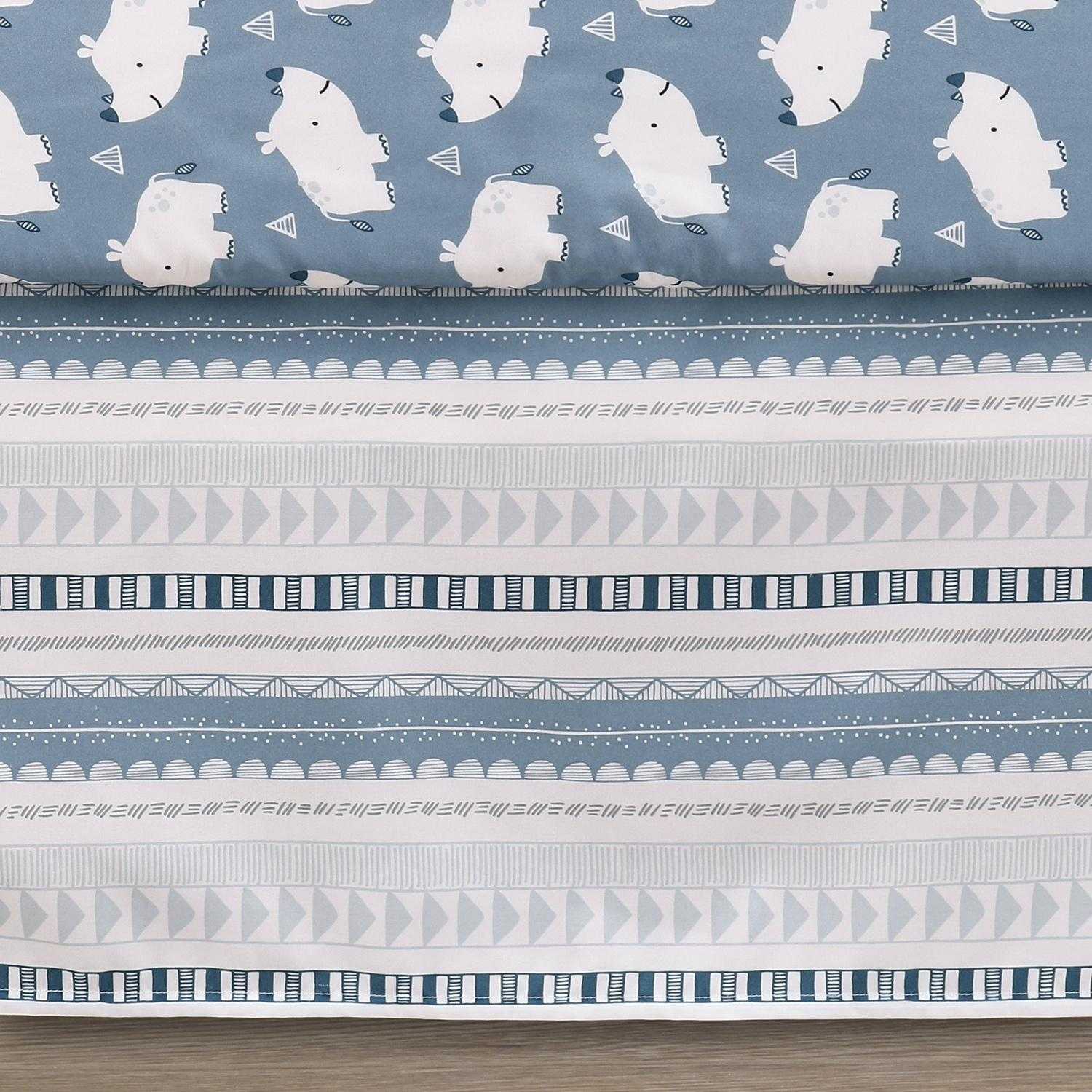 Our Elephant Walk 3 Piece Baby Crib Bedding Set for Boys & Girls brings a charming and playful elephant theme to your baby’s nursery, featuring an elephant herd and tribal patterns. This 3-piece set includes everything you need for a coordinated nursery look: a beautifully crafted crib quilt, a fitted crib sheet, and a matching bed skirt. The fitted crib sheet is designed to fit standard crib mattresses (28" x 52") securely with all-around elastic, ensuring a snug and comfortable environment for your baby. Made from soft microfiber, our bedding set is gentle on your baby’s delicate skin, offering warmth and coziness throughout the night. The quilt adds an extra layer of softness, creating an inviting space for your little one to rest. All pieces are machine washable, making them easy to clean and maintain. The microfiber fabric is designed to retain its softness and vibrant colors, ensuring the bedding set remains fresh, cozy, and beautiful through repeated washes.