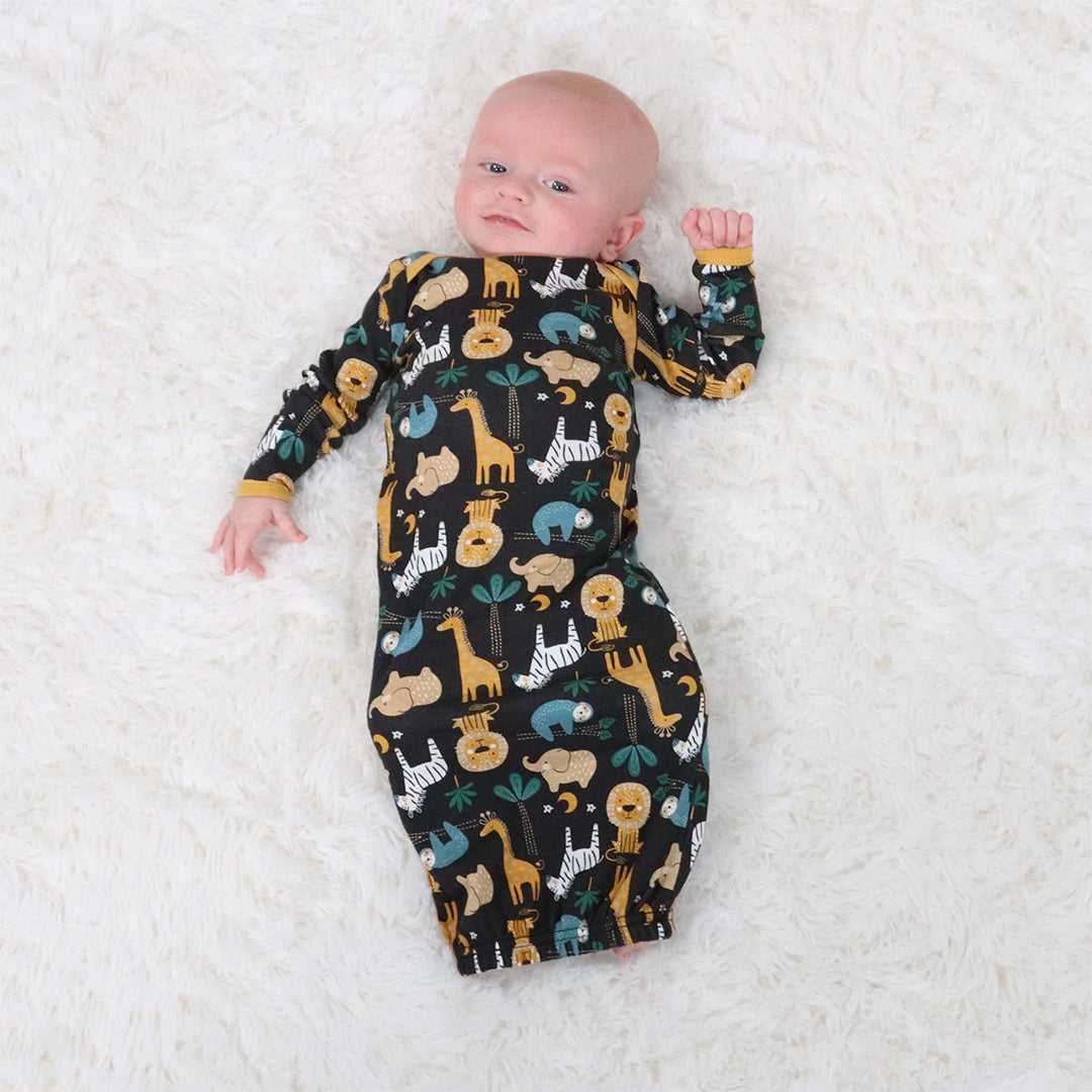 Our Wild Jungle Newborn Baby Layette Gift Set offers 16 essential pieces crafted from ultra-soft, 100% cotton fabrics, providing gentle comfort for your baby’s delicate skin. Designed to keep your little one cozy through every season, this set includes 3 short sleeve bodysuits, 3 pairs of pants, 1 sleep sack, wearable blanket with zipper and snap tab, 3 hats, 3 pairs of mittens, and 3 pairs of socks. Our newborn baby clothes are designed for maximum comfort, making this baby essentials set a practical and stylish addition to your baby boy's or girl’s wardrobe.