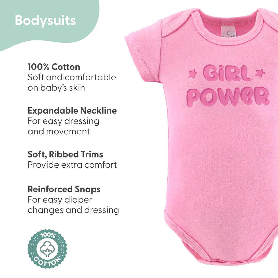 Featuring vivid fuchsia, pink, and white pieces with the bold floral print, this Pretty in Pink layette set allows your baby to showcase a cool, laid-back style from the very start. This baby clothing set makes an excellent baby shower gift for ages newborn, 0-3, 3-6, and 6-9 months, offering the essentials every baby needs with a fun, modern twist. Plus, all the pieces are machine washable, ensuring that busy parents can easily clean and maintain these durable, soft items wash after wash. Combining comfort, practicality, and style, this new born clothes set is a joyful gift for any new parent. This baby girl set is perfect as a new baby girl gift. Whether you are looking for a baby shower gift, doing a baby registry search, or need additions to a baby gift basket, they are sure to be appreciated by new parents as baby girl essentials.