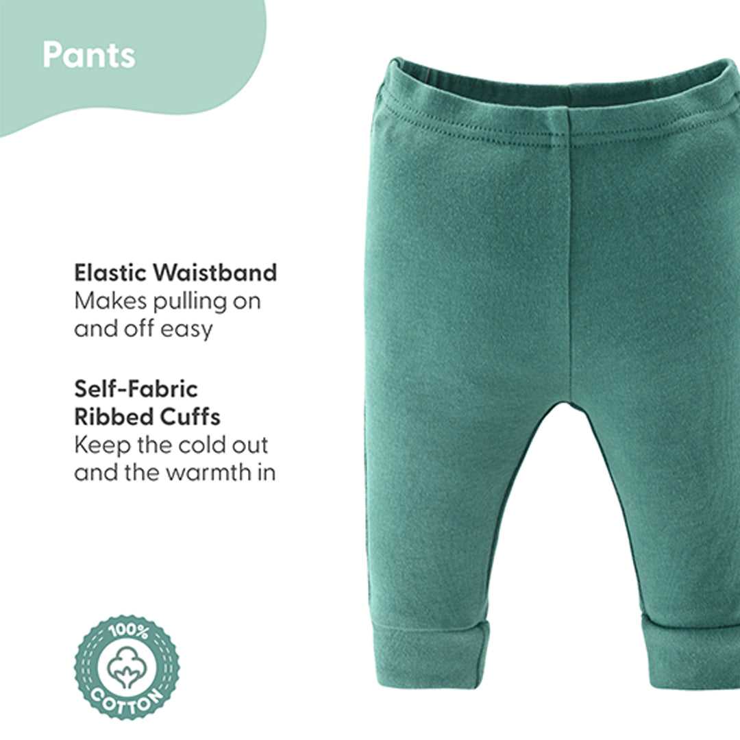 Featuring yellow gold, dark green, and black pieces with animals, this King of the Jungle layette set allows your baby to showcase a cool, laid-back style from the very start. This baby clothing set makes an excellent baby shower gift for ages newborn, 0-3, 3-6, and 6-9 months, offering the essentials every baby needs with a fun, modern twist. Plus, all the pieces are machine washable, ensuring that busy parents can easily clean and maintain these durable, soft items wash after wash. Combining comfort, practicality, and style, this new born clothes set is a joyful gift for any new parent. This baby boy set is perfect as a new baby boy gift. Whether you are looking for a baby shower gift, doing a baby registry search, or need additions to a baby gift basket, they are sure to be appreciated by new parents as baby boy essentials.