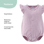 Crafted from premium, breathable cotton, our Lilac Stars Baby Girl Rompers offer unmatched softness, making them an essential piece of baby girl clothing. Gentle on sensitive skin, they’re available in sizes ranging from Newborn to 24 months, offering the perfect fit for your growing baby, and making them an essential part of any baby wardrobe. Designed with busy parents in mind, they feature a tagless design for comfort and nickel-free snaps for hassle-free outfit swaps and quick diaper changes. Built to endure countless washes, the reinforced stitching and pre-shrunk fabric ensure long-lasting durability.