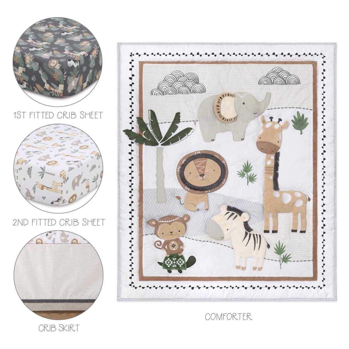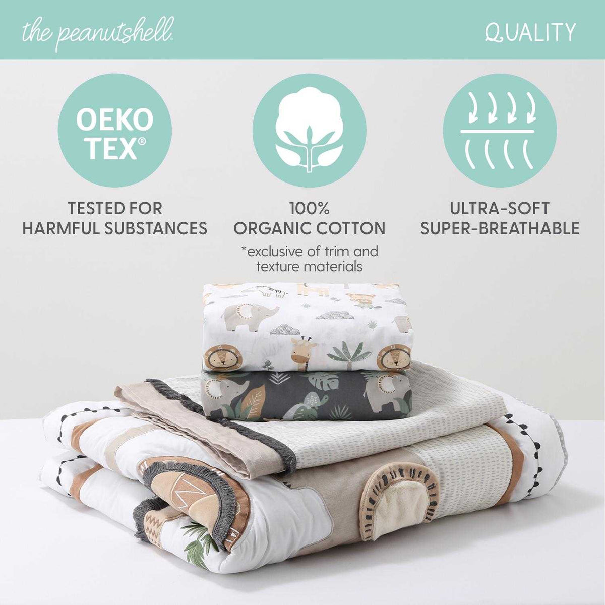 Safari Serenity 4 Piece Organic Cotton Baby Crib Bedding Set for Boys & Girls