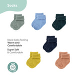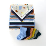 This complete baby layette set includes 1 long-sleeve footed sleeper, 3 long-sleeve bodysuits, 3 short-sleeve bodysuits, 4 pairs of pants, 6 pairs of socks, 3 terry feeding bibs, and 3 bandana bibs—covering all essential baby boy newborn clothes from morning to bedtime. Crafted from 100% cotton for ultimate softness and breathability, each piece feels gentle against your baby's delicate skin.