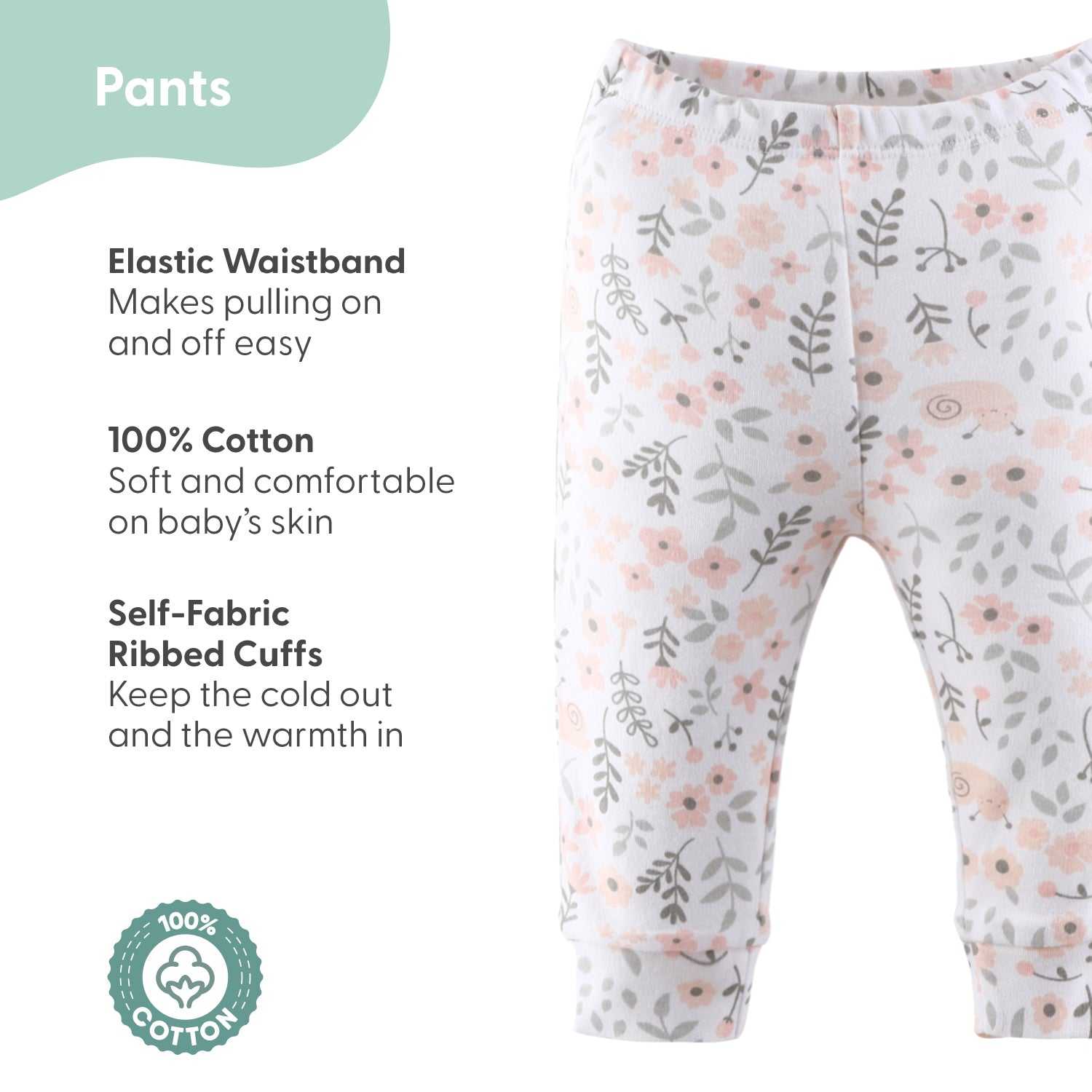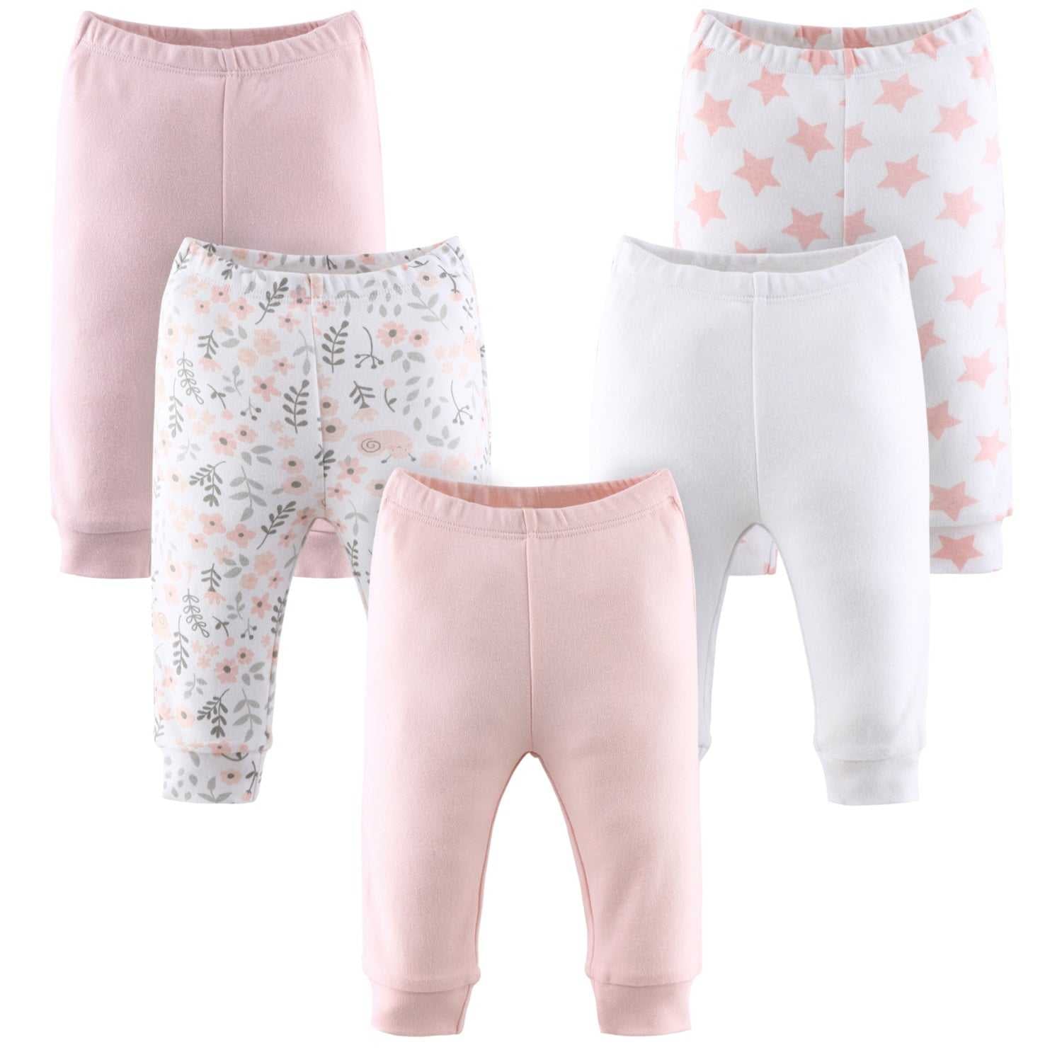 Designed for durability, these newborn baby girl pants are machine washable and maintain their vibrant colors and softness through frequent wear. The elastic waistband ensures a snug yet comfortable fit, and the matching-fabric cuffs hold each pair securely in place. This set of 5 baby pants not only offers practicality and comfort but also makes an excellent gift for baby showers or birthdays, delivering a stylish yet functional wardrobe staple for any little one.